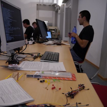 16:00➚ 16:30➙ 17:00➙ 17:30➙ 18:00➙ 18:30➙ 19:00➙ 19:30➙ 20:00➙ 20:30➙ 21:00➘ Kapelle (Projekte) 17:00 (Special) Eröffnung 17:20 (Vortrag) Einführung zum Raspberry Pi Hardware und Software 18:00 (Vortrag) Cross-Compiling für den Raspberry Pi am Beispiel von TrueCrypt 18:40 (Vortrag) Grundlagen elektrischer Busse am Beispiel von I²C 19:40 (Workshop) Workshop: Das Ladder-Game 20:30 (Workshop) LCD-Display am Raspberry Pi PCD8544-Display aus Nokia-Handys
